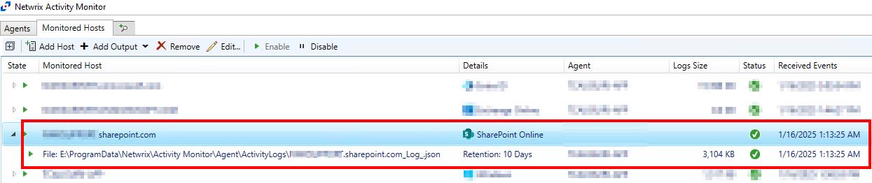 \AgentHost\C$\ProgramData\Netwrix\Activity Monitor\Agent\ActivityLogs.- This value can be found by converting the file output path from the SharePoint monitored host in Activity Monitor to UNC format.