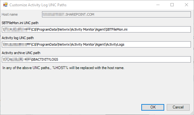 - This value can be found by converting the file output path from the SharePoint monitored host in Activity Monitor to UNC format.
