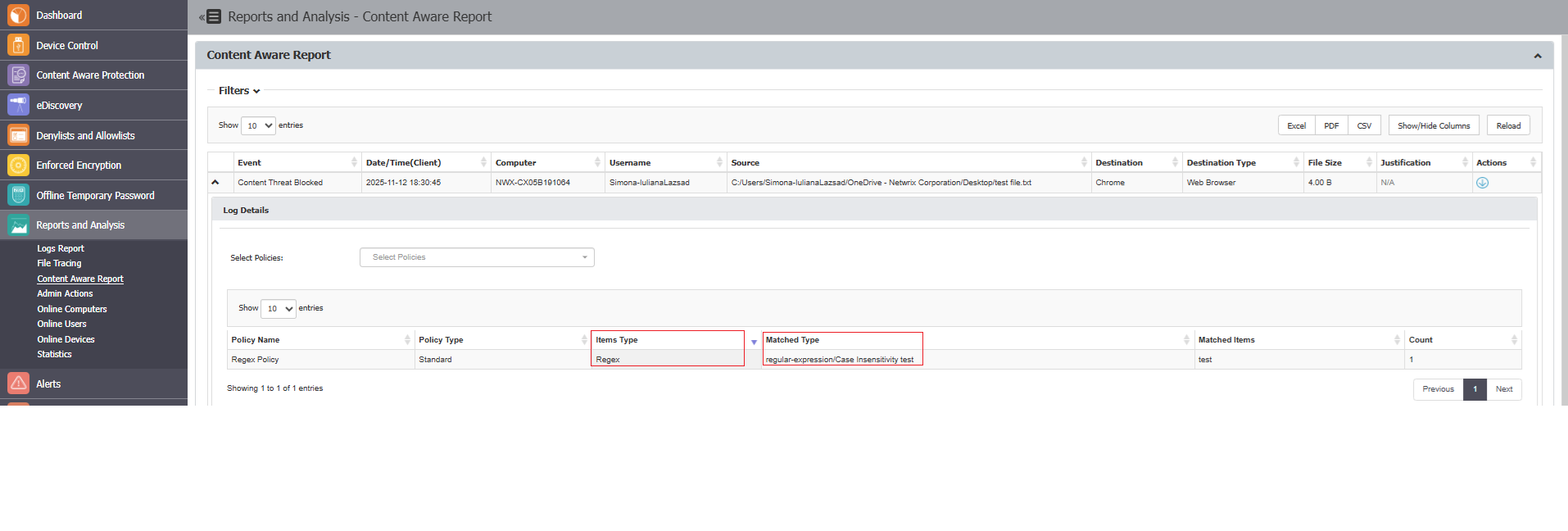 Endpoint Protector supports both standard Regex syntax and Perl-Compatible Regular Expression (PCRE) extensions and modifiers. For example, you can use the (?i) modifier at the beginning of a regex pattern to make it case-insensitive during matching.