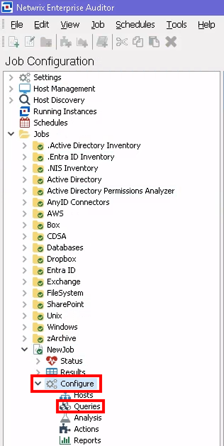 - Navigate to the Configure node of the NewJob and select the Queries node.