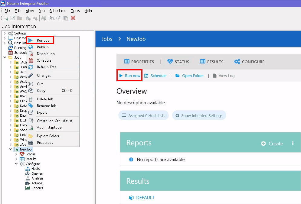 - To run the job, you can either select Run now from the job windowpane or right-click the job and select Run Job.
